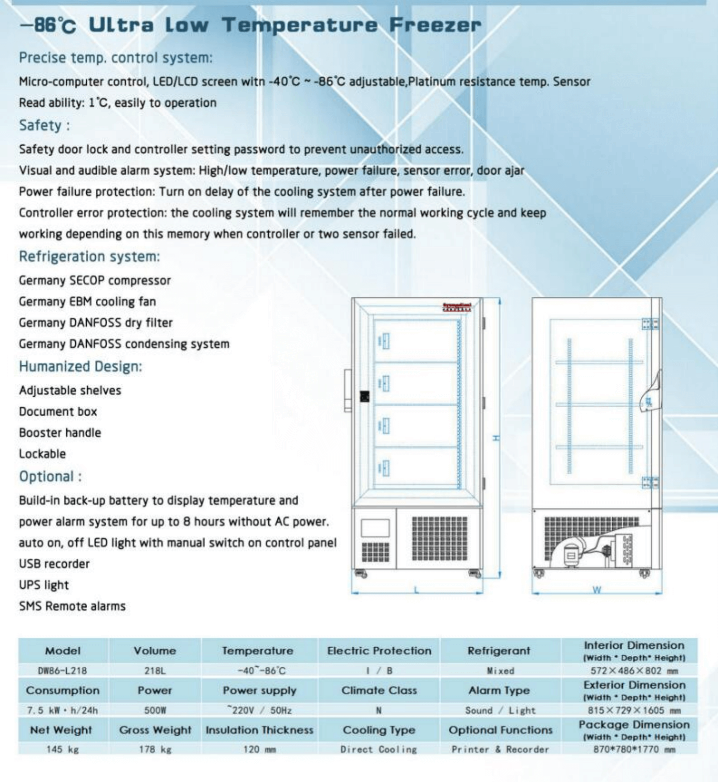 현재 위치: 홈페이지 / 제품 / 병원 장비 / 혈액 은행 / -86 초저온 냉동고